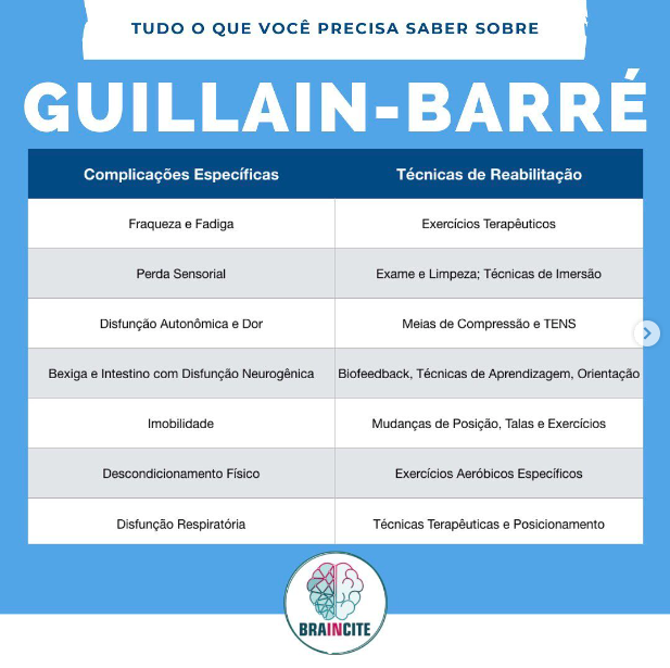 🟡 O manejo da Síndrome de Guillain-Barré depende de uma equipe multidisciplinar que atuará diretamente na reabilitação, objetivando a restauração funcional desses pacientes.